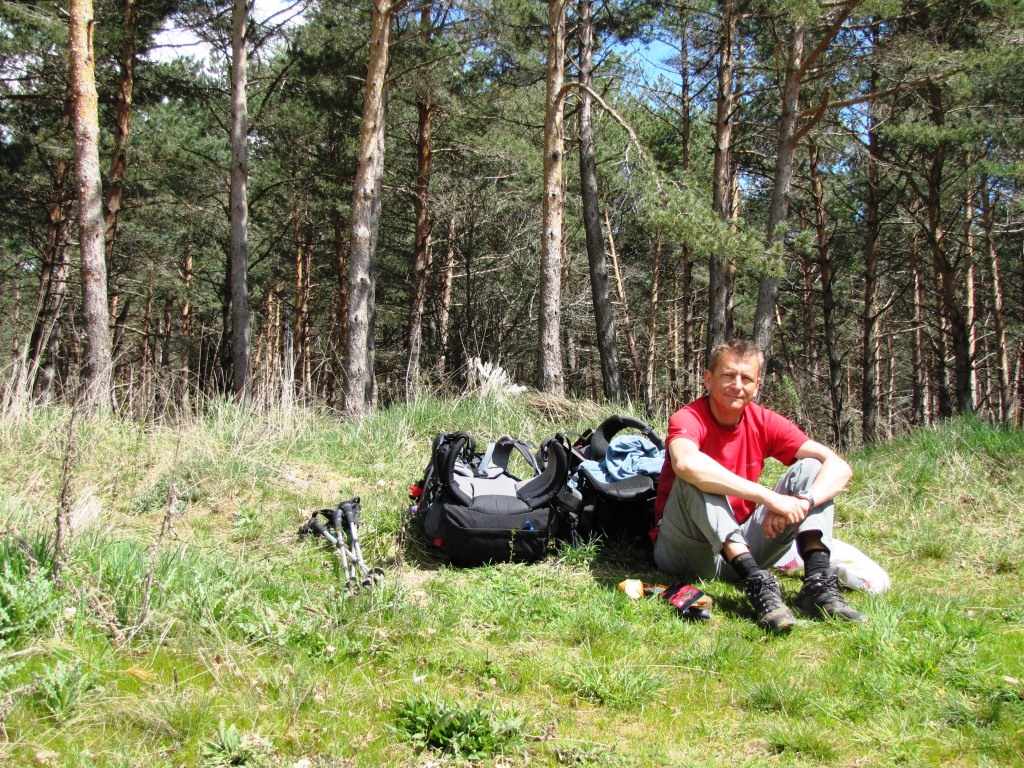 kleine Mittagspause am Waldrand. Die Sonne scheint. Wir hören direkt neben uns ein Kuckuck.