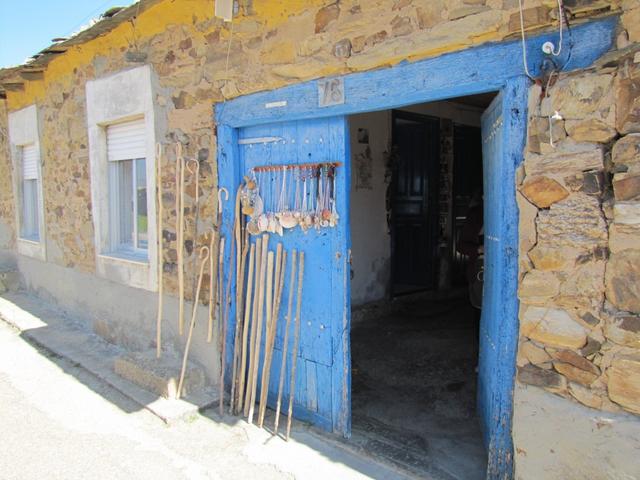 hier werden von Hand gefertigte Pilgerstöcke verkauft