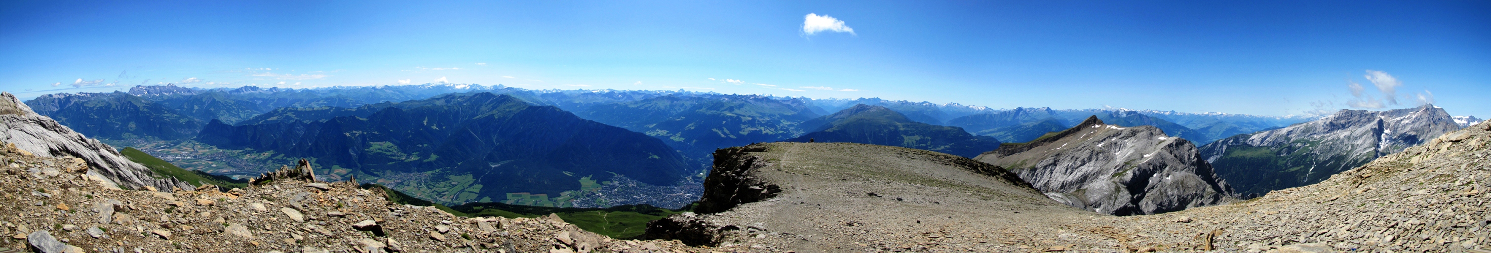 schönes Breitbildfoto mit Blick ins Rheintal. Die Aussicht reicht bis ins Engadin Datum 08.02.2017