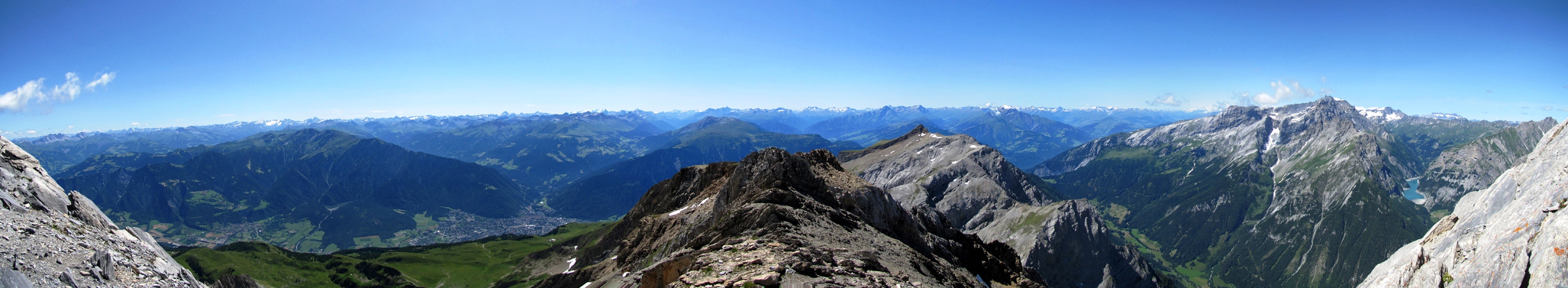 sehr schönes Breitbildfoto, mit Rätikon, Silvretta, Chur, Piz Kesch, Berninakette, Ringelspitz, Sardona und Gigerwaldstausee Datum 09.02.2017