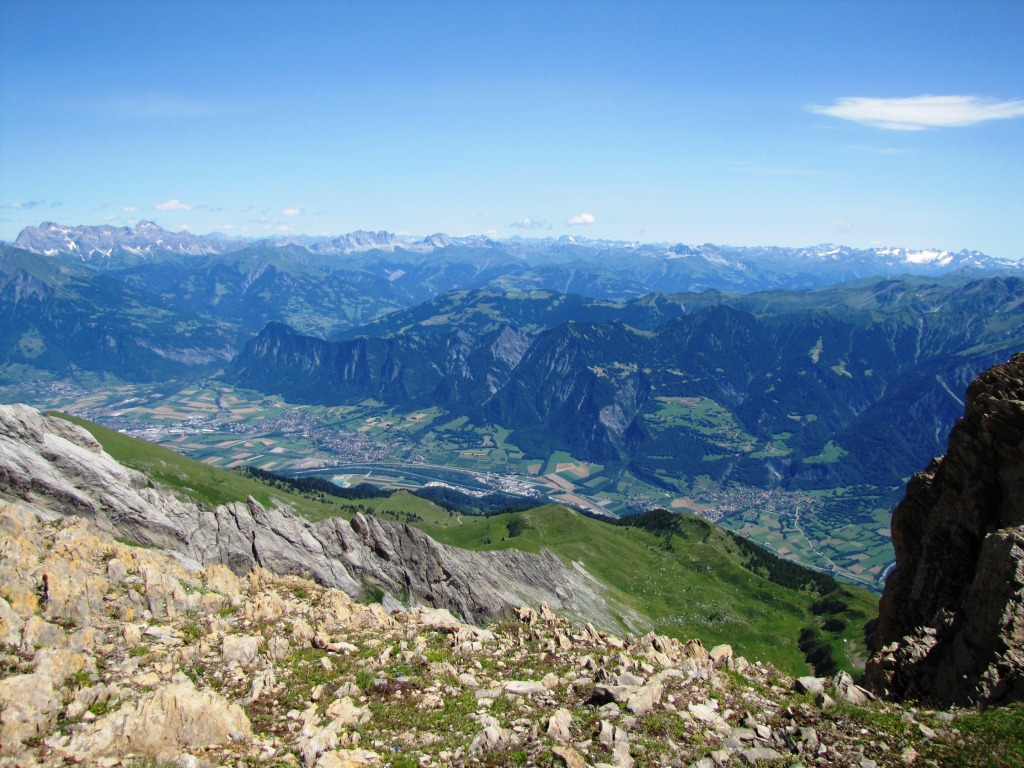Tiefblick ins Rheintal mit Cyprianspitz. Dort oben waren wir auch schon Datum 24.03.2013