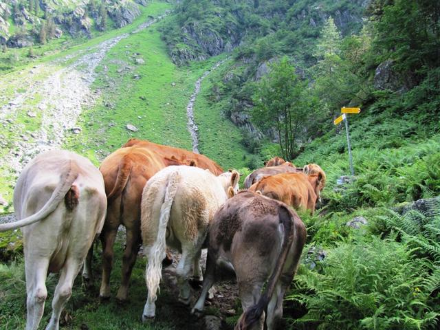 Kühe versperren uns den Weg kurz vor Schrätteren