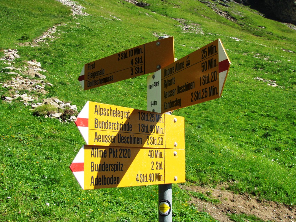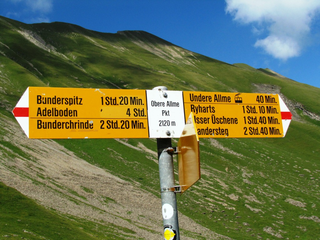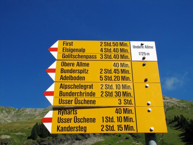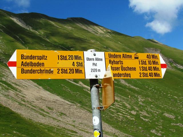 Wegweiser Undere Allme 1725 m.ü.M. bei der Bergstation der Luftseilbahn Datum 02.04.2013