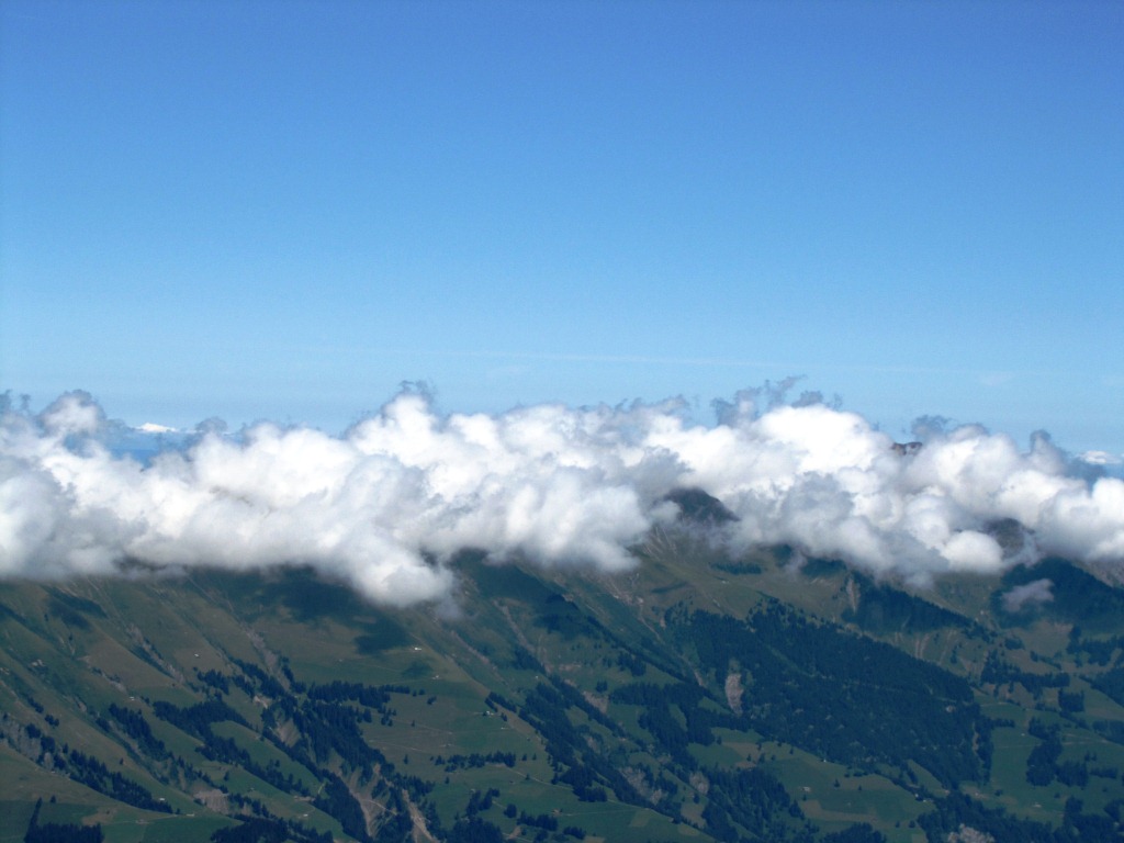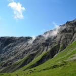 wir haben die richtige Seite gewählt. Auf der gegenüberliegende Seite des Entschligetal bedecken Wolken die Berggipfel Datum 02.04.2013