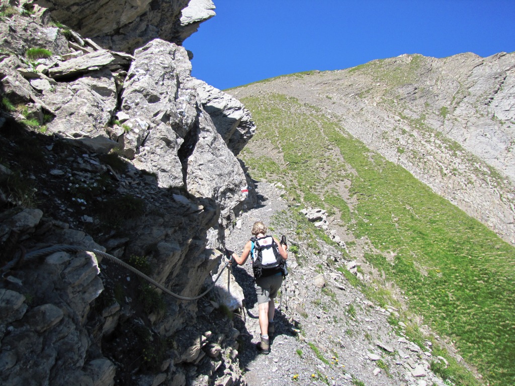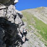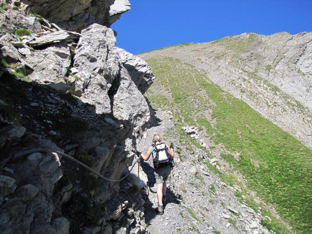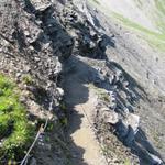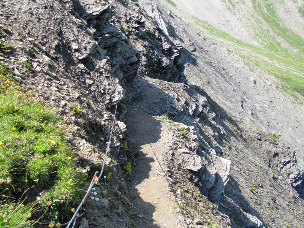 kurz vor dem Sattel ist ein kleines Wegstück mit einem Drahtseil gesichert Datum 02.04.2013
