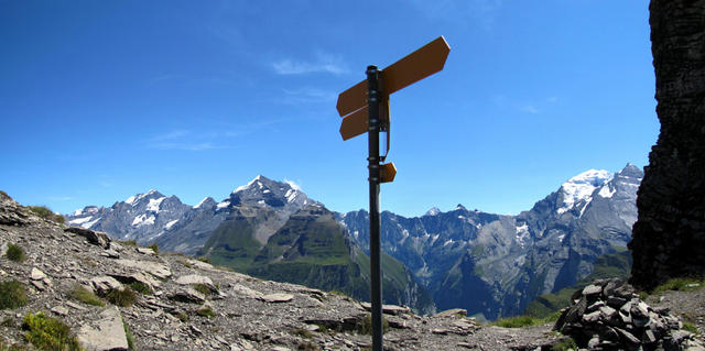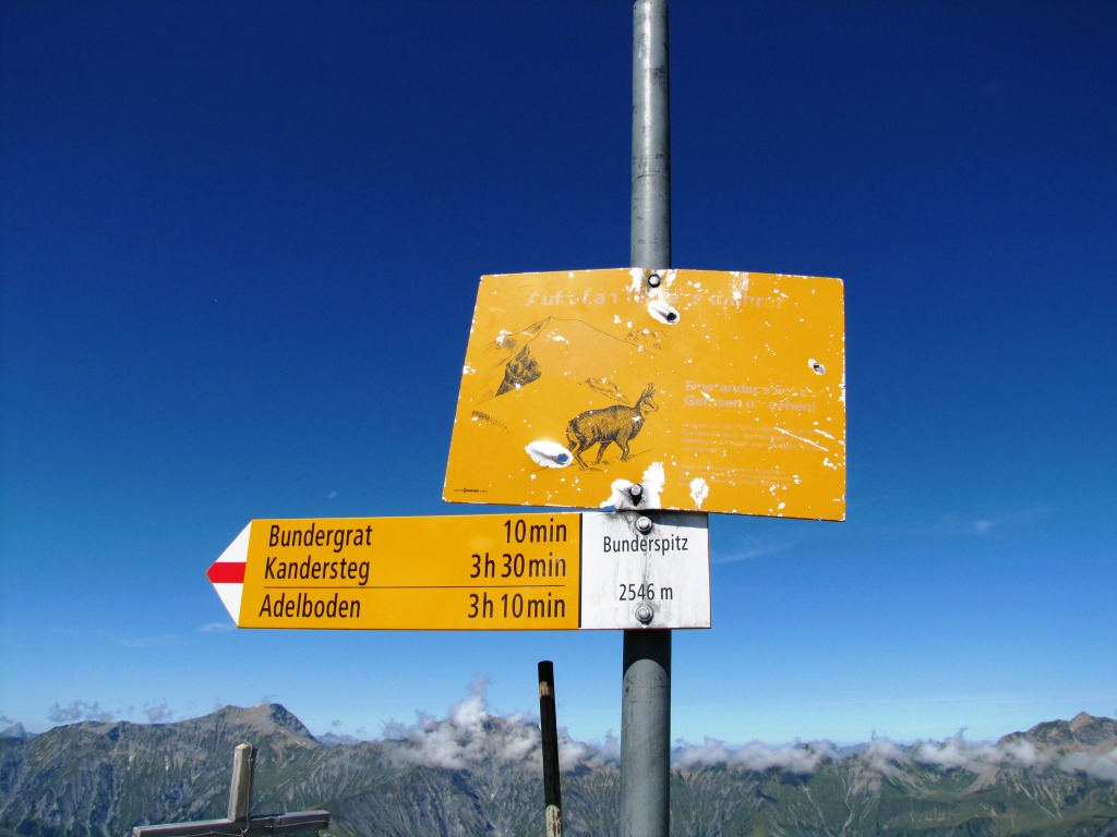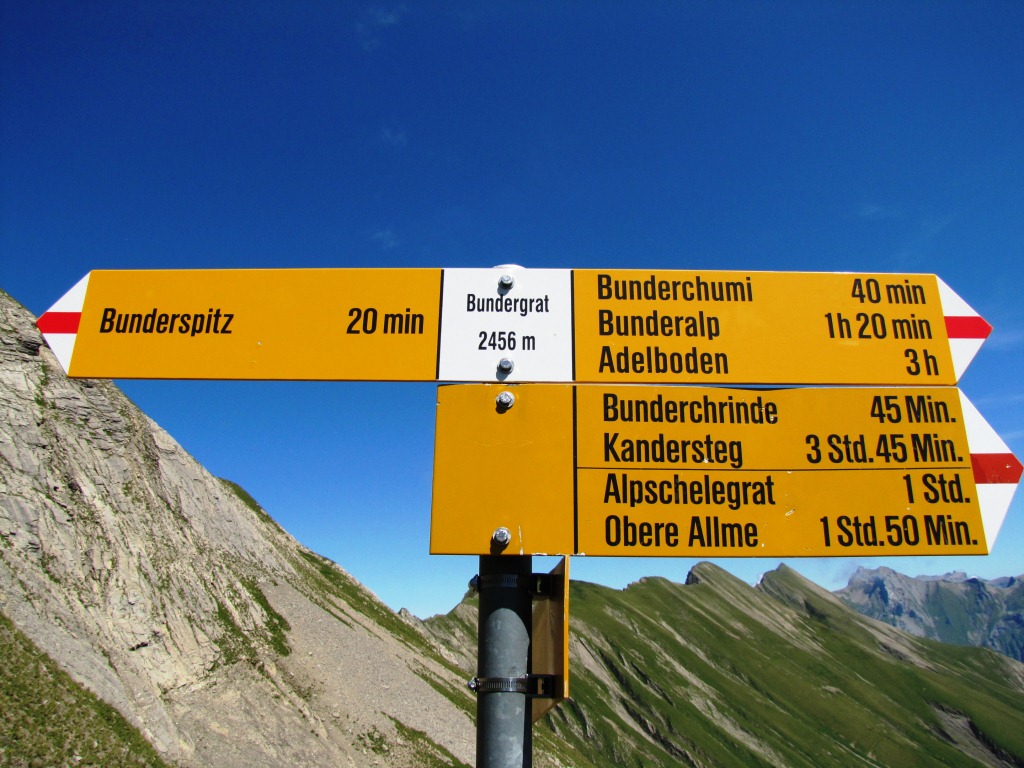 der Wegweiser auf dem Bundergrat 2456 m.ü.M. Datum 03.04.2013