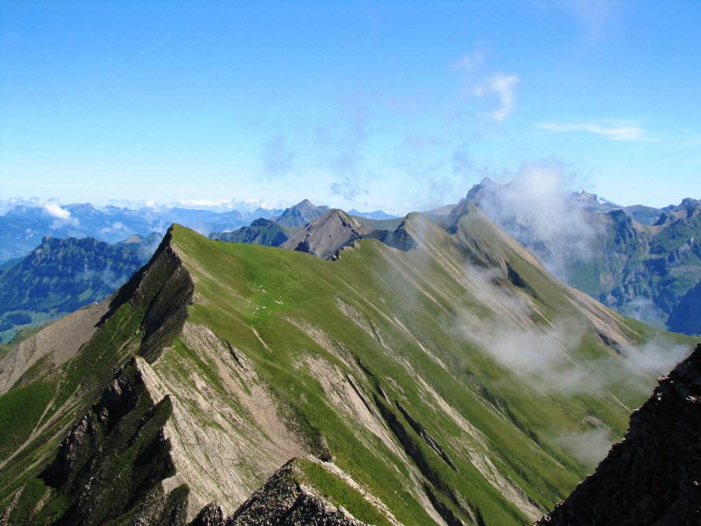 Blick hinüber zum Alpschelegrat. Über diesen Grat werden wir den Abstieg unter die Füsse nehmen Datum 03.04.2013