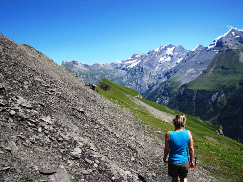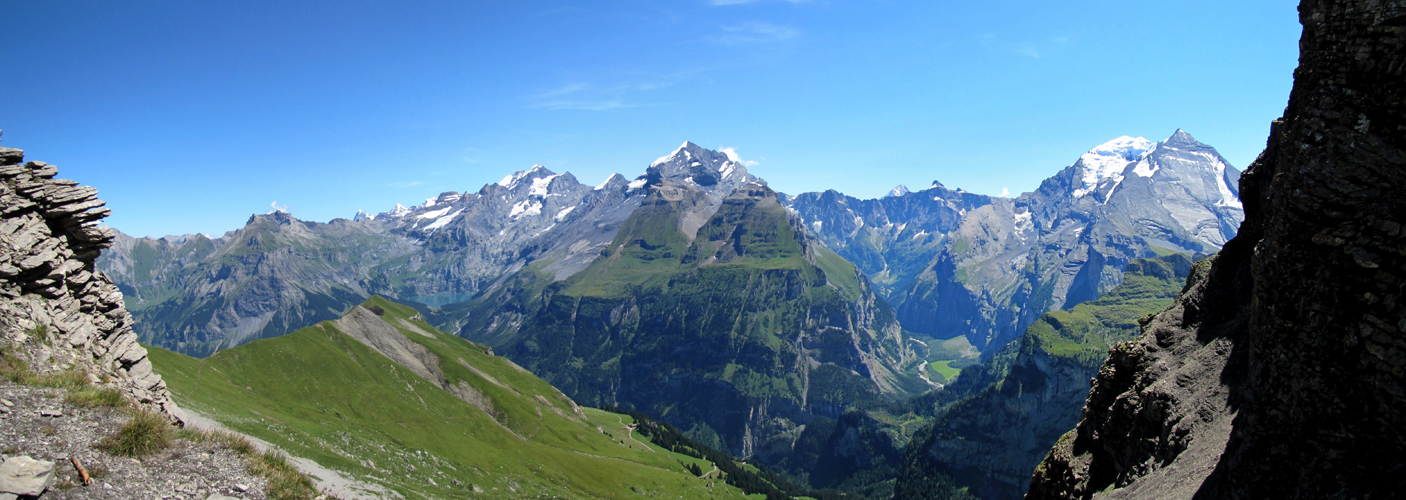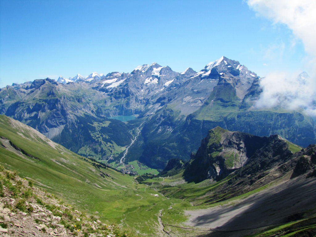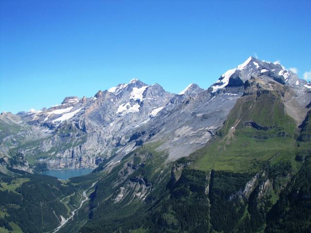 was für ein Panorama. Inmitten der Berner Bergriesen der blaue Oeschinensee Datum 04.04.2013