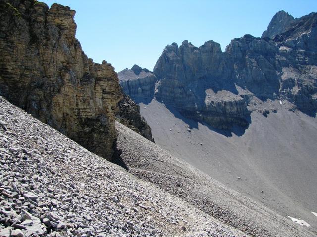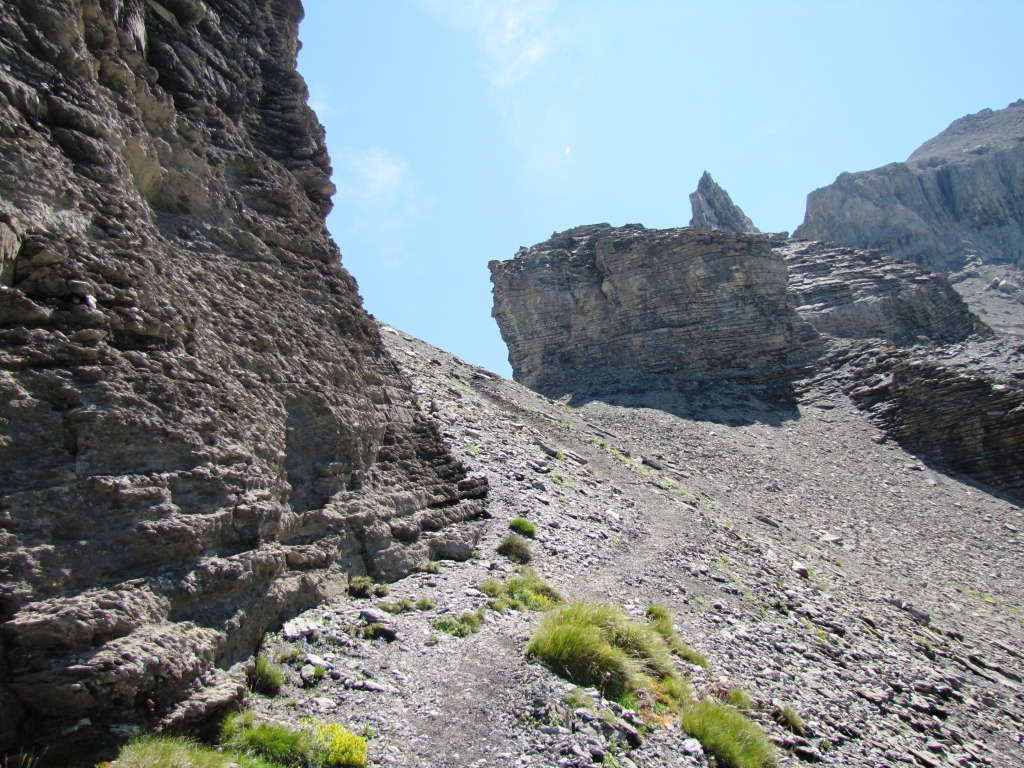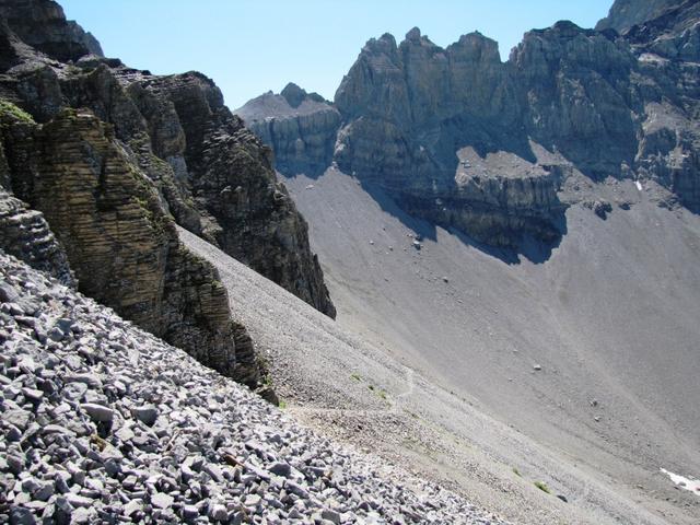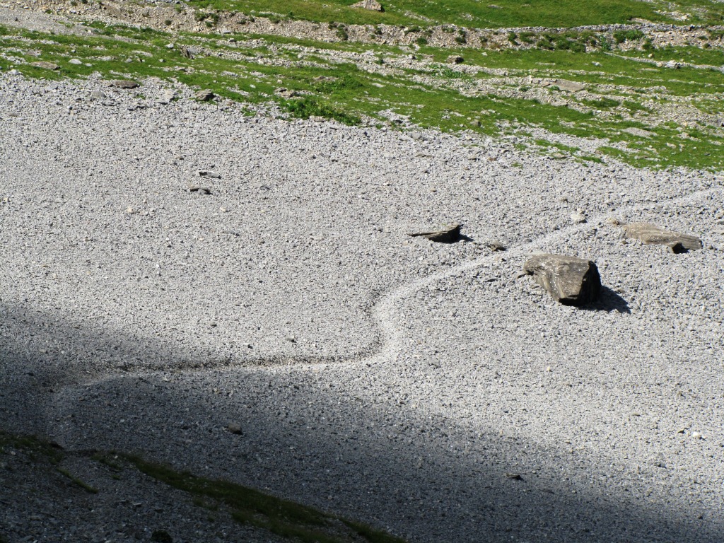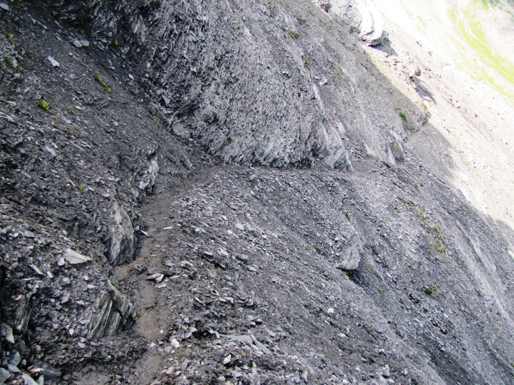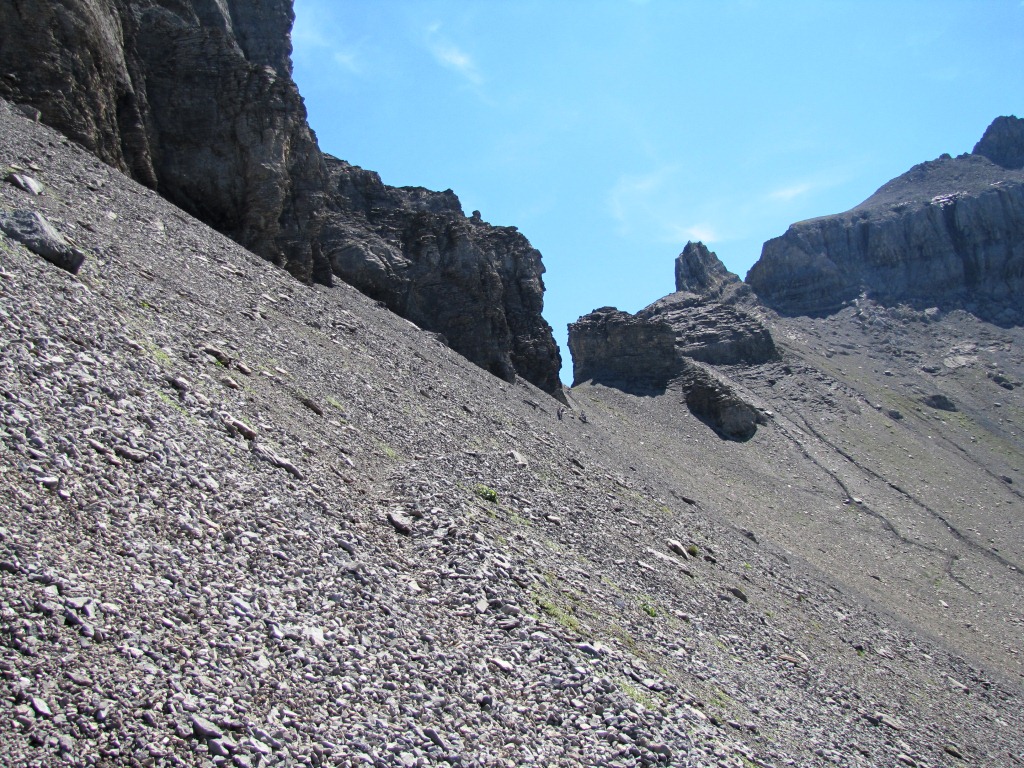 über Geröll führt der Weg nun abwärts zur Bunderchrinde, die mit einem Gegenanstieg überwunden wird Datum 03.04.2013