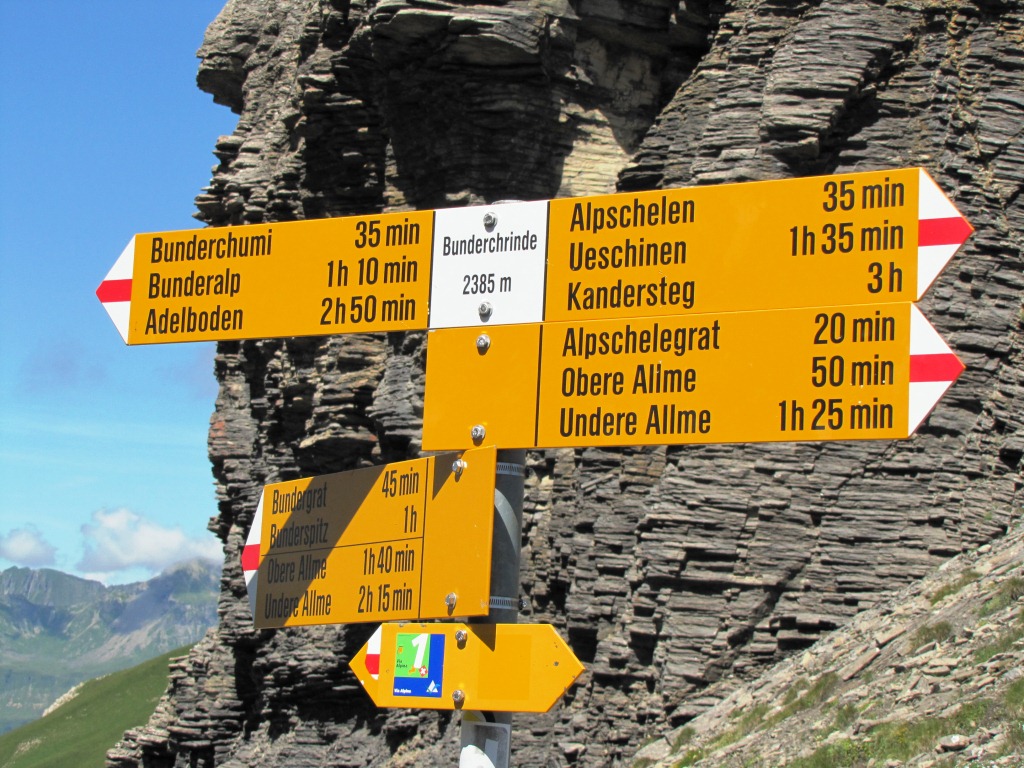 Wegweiser auf der Bunderchrinde 2385 m.ü.M. Datum 03.04.2013