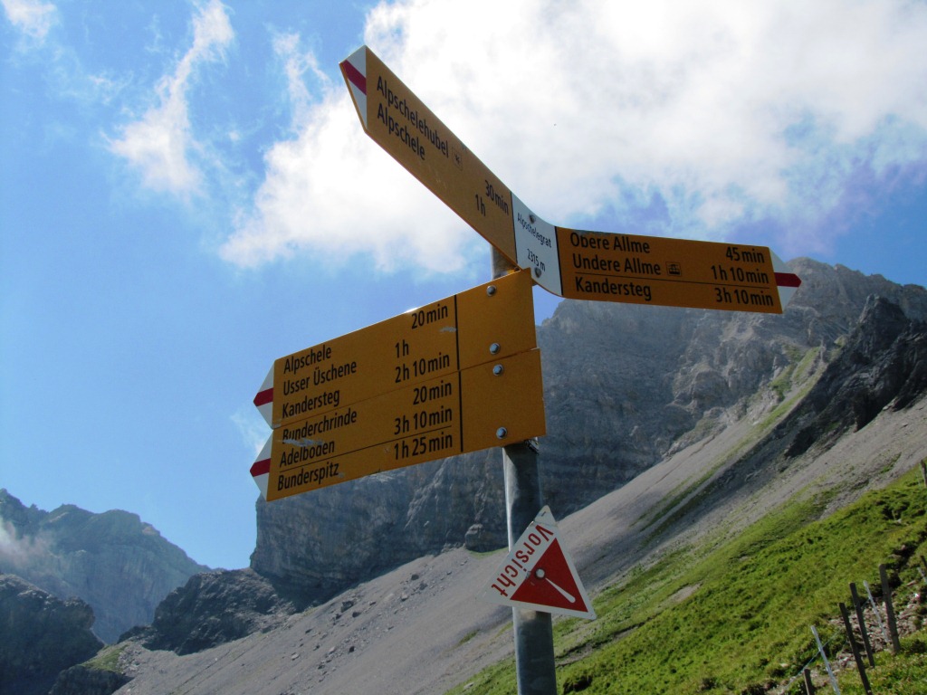 der Wegweiser weisst auf die Gefährlichkeit der Weges hin Datum 04.04.2013