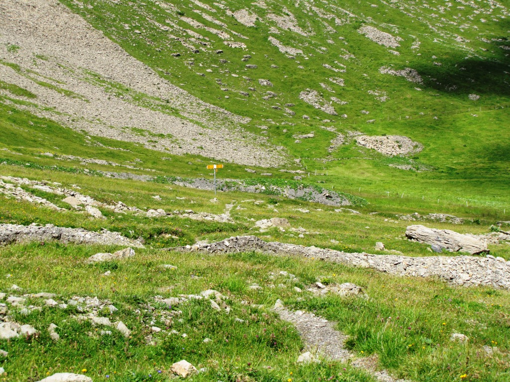bei Punkt 2315 m.ü.M. beim Alpschelegrat biegt der Wanderweg abrupt rechts ab Datum 04.04.2013