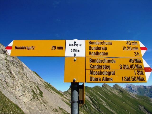 der Wegweiser auf dem Bundergrat 2456 m.ü.M. Datum 03.04.2013