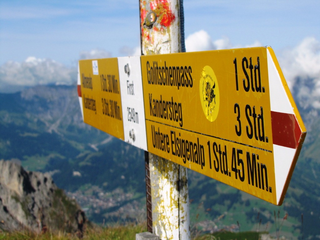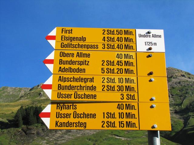 Wegweiser Undere Allme 1725 m.ü.M. bei der Bergstation der Luftseilbahn Datum 07.04.2013
