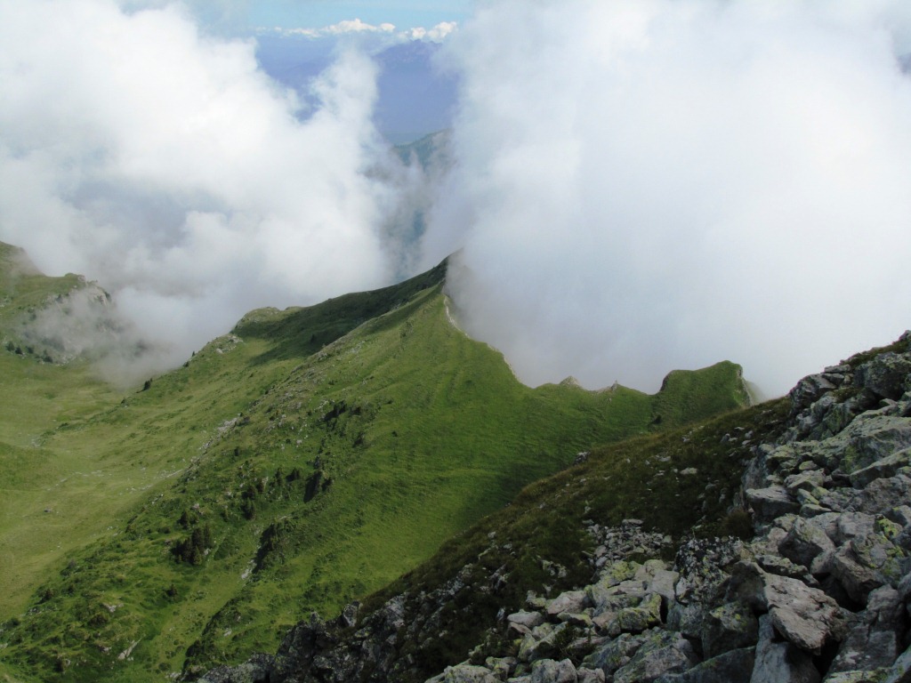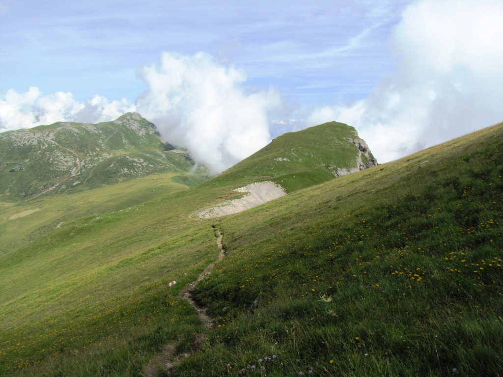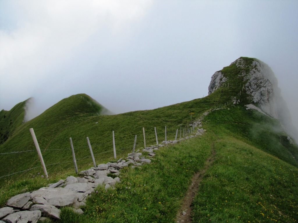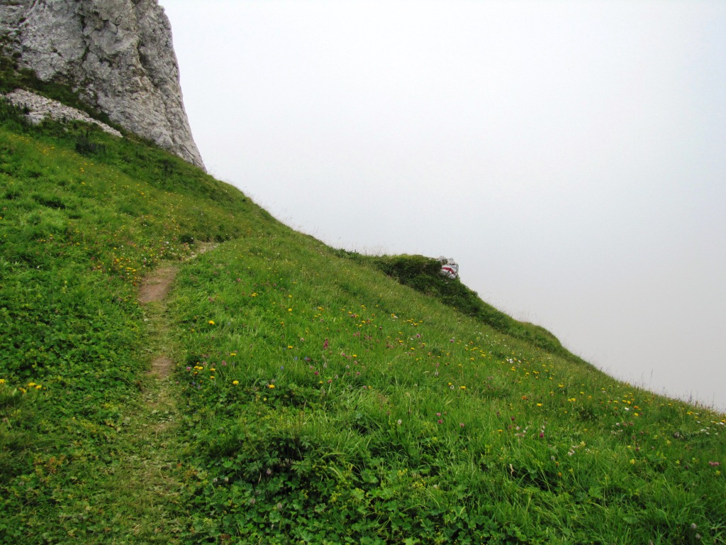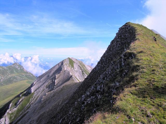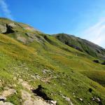 vor uns taucht der grasige Gipfel des Stand auf Datum 07.04.2013