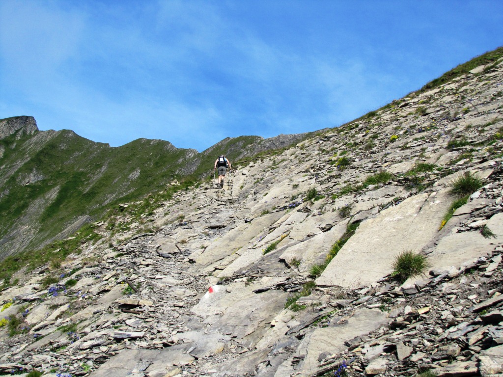 der Weg ist immer gut ersichtlich und markiert und nicht exponiert, einfach steil Datum 07.04.2013