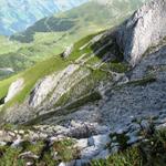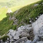 Blick hinauf zur Schlüsselstelle. Wer sich dies nicht zumutet, kann vom Gipfel des First auf gleichem Weg wieder zur Talstation Datum 07.04.2013