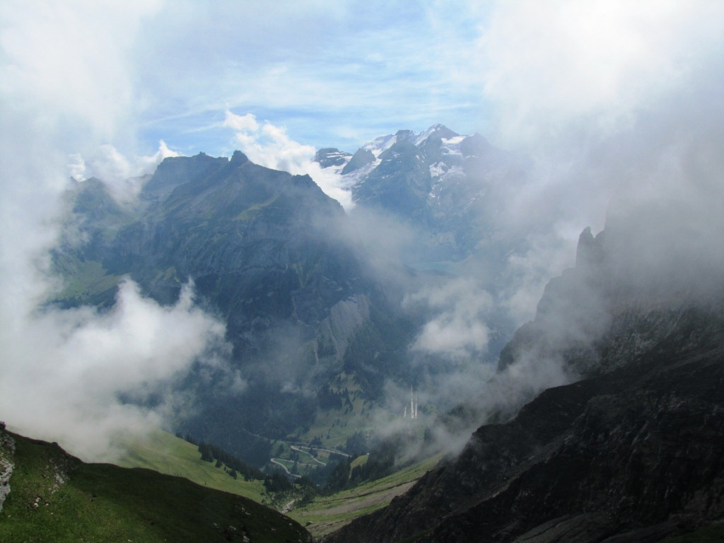 Blick ins Entschligetal, Elsigenalp mit Elsigsee. Dort waren wir auch schon Datum 07.04.2013