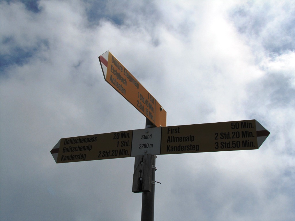 Wegweiser auf dem Golitschepass 2179 m.ü.M. Datum 07.04.2013