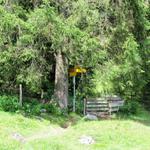 der Weg führt nun durch einen Föhrenwald. Es ist heiss und es duftet nach Harz und frischem Holz Datum 07.04.2013