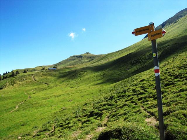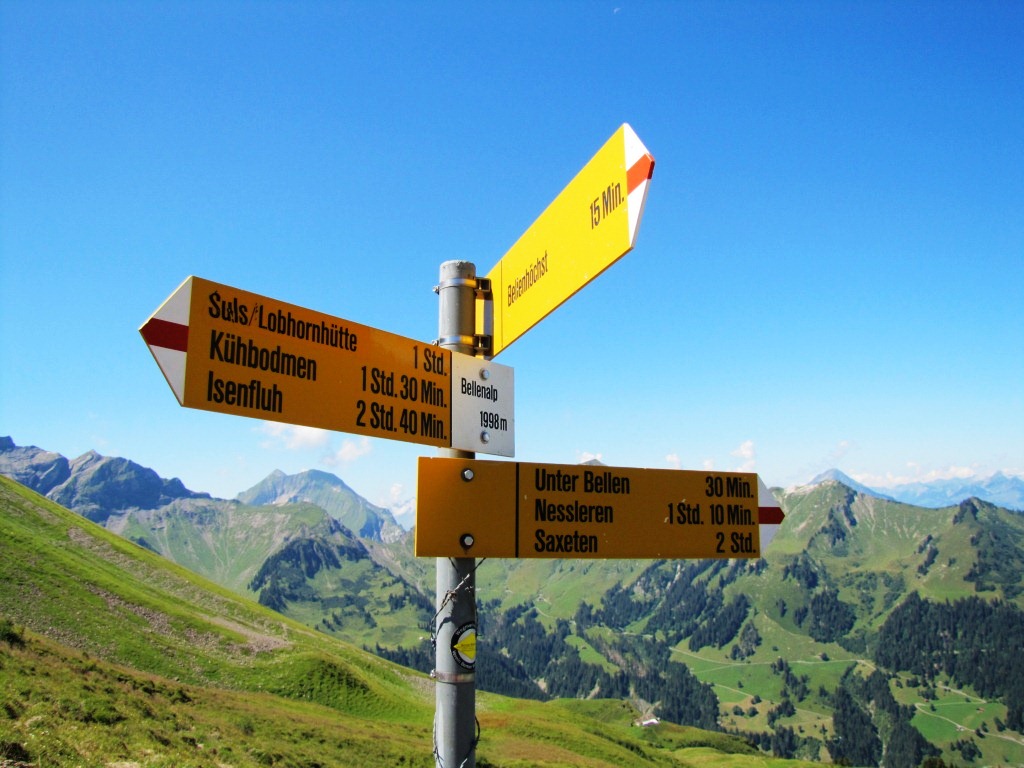 Wegkreuzung auf dem Sattel bei der Bällenalp 1998 m.ü.M. Datum 09.04.2013