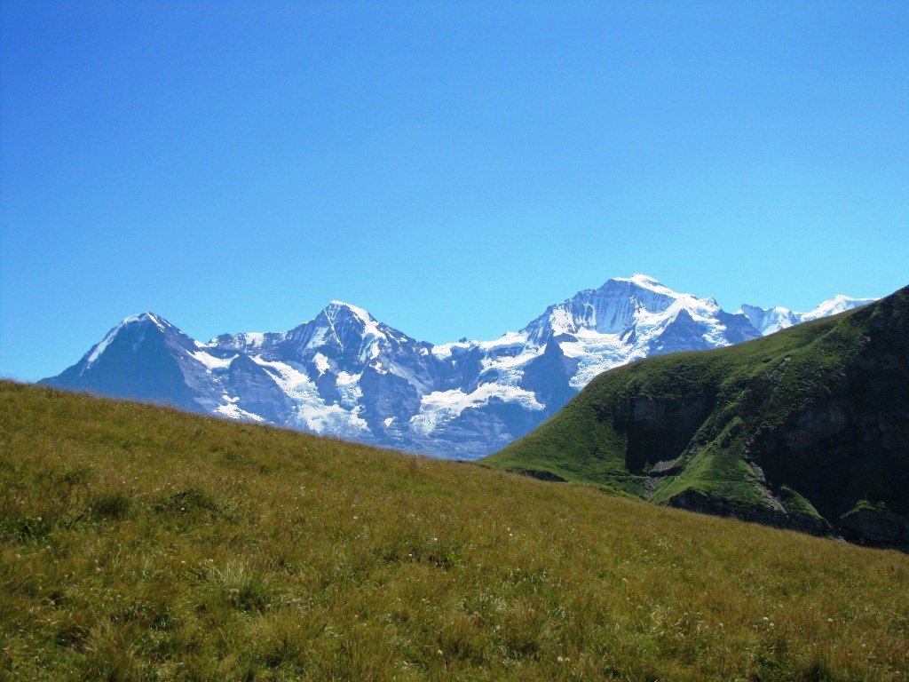 sehr schönes Breitbildfoto mit Eiger, Mönch, Jungfrau und Äbeni Flue. Ganz rechts der Bietenhorn, dort waren wir auch schon Datum 10.02.2017