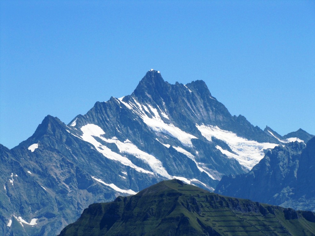 was für eine Aussicht Wetterhorn, Ewigschneehorn, Schreckhorn, Lauteraarhorn, Eiger, Mönch und Jungfrau Datum 09.04.2013