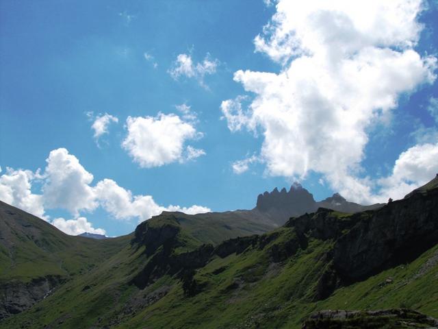 kurz vor dem Sulsseewli, tauchen rechts die Lobhörner auf Datum 09.04.2013