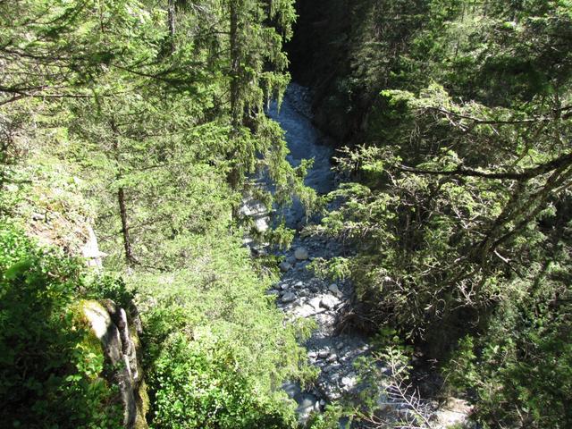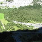 die wilde Kander tief unter uns. Die Kander hat am 10.10.2012 beim grossen Unwetter grosse Verwüstungen hinterlassen