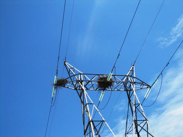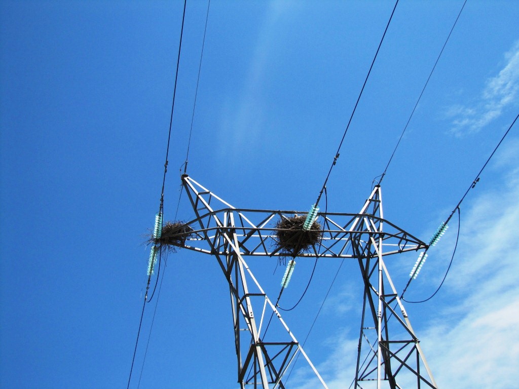 wenn das nur gut geht. Storchennester auf einer Hochspannungsleitung Datum 03.10.2012