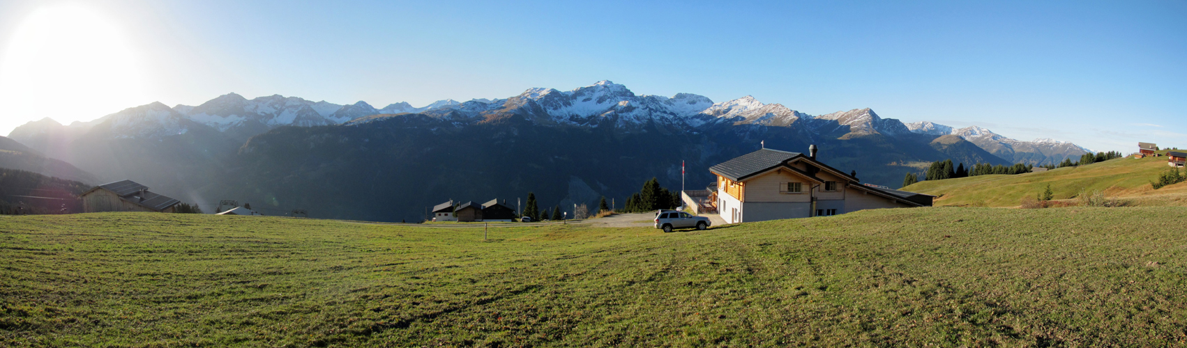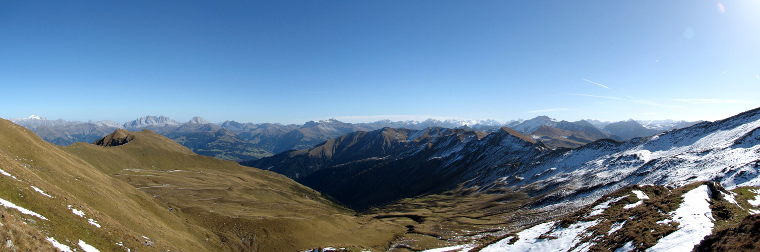 Breitbildfoto vom Fürggli aus gesehen mit Blick ins Schanfigg. Einfach schön