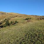 über sanfte Hochweiden laufen wir abwärts Richtung Eilisch