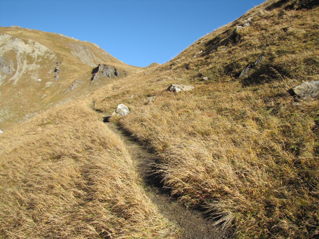 der Weg führt weiter aufwärts zum Sattel der den Hochwang mit dem Ratosen Stein verbindet