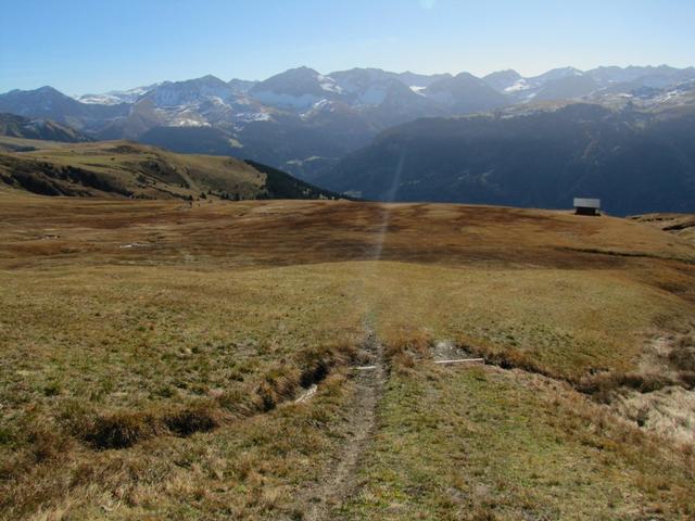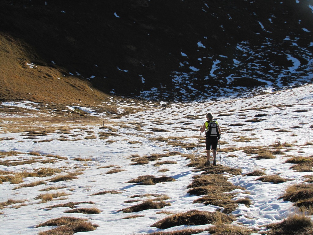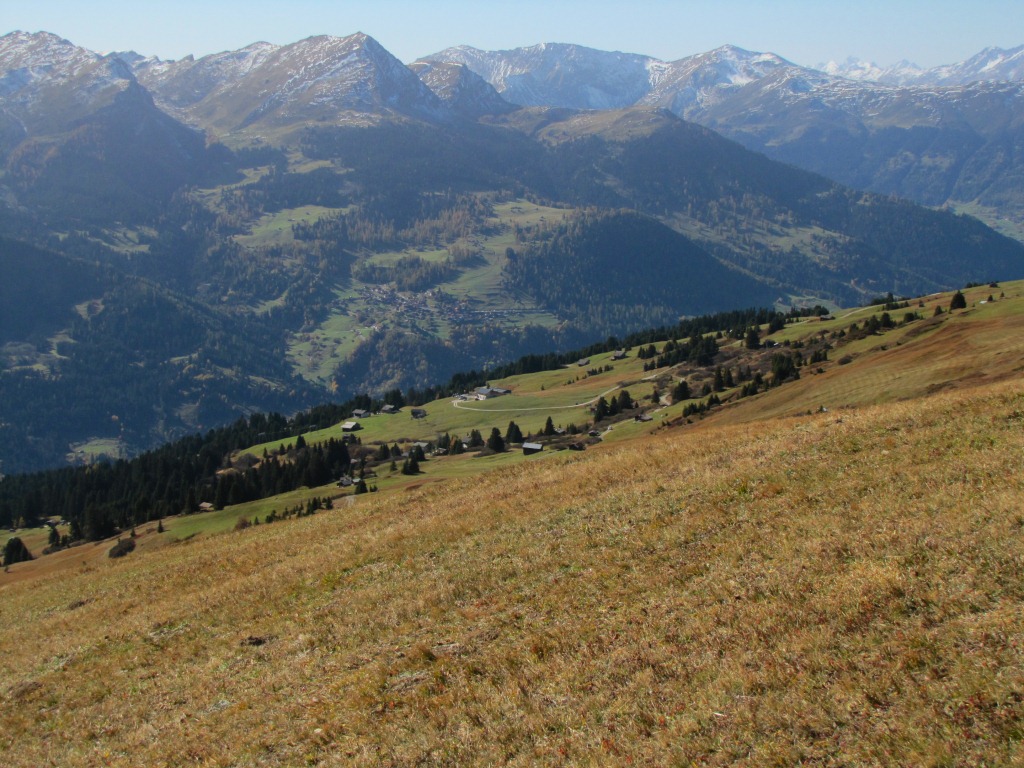 zum teil weglos geht es nun über die Sonnenterrasse des Schanfigg, bei Furgglis abwärts