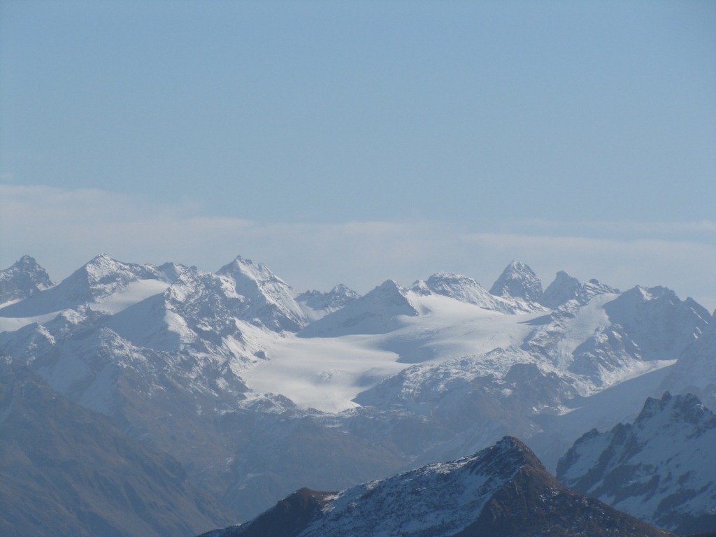 sehr schönes Breitbildfoto vom ganzen Rätikon. Schön aufgereiht sind alle Berge ersichtlich