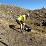 Mäusi nimmt den Rucksack wieder auf die Schulter. Wir hatten den Rucksack gewollt hier liegengelassen