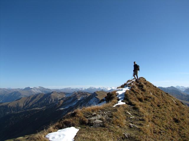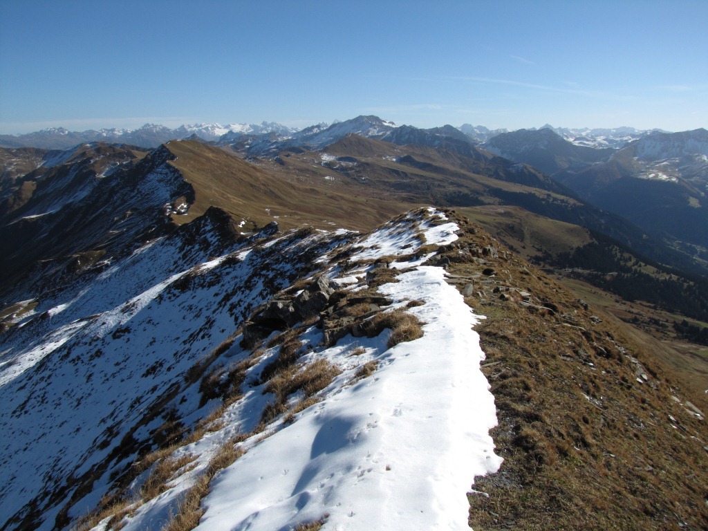 auf dem Grat. Links das Prättigau, rechts das Schanfigg