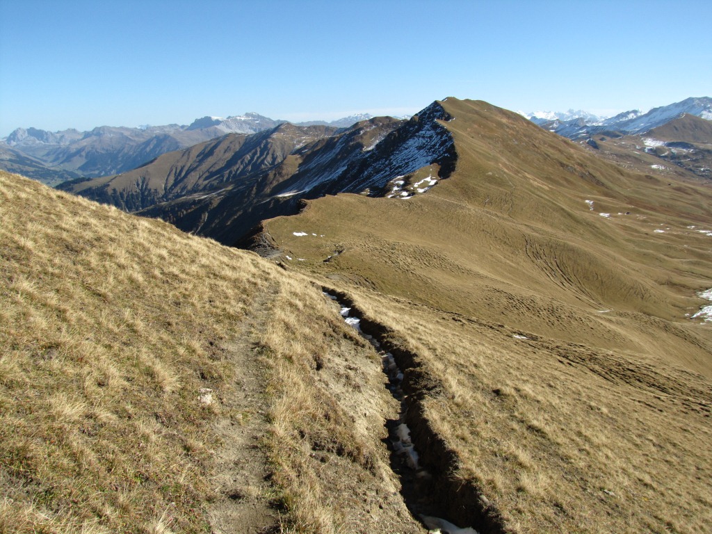 auf dem Südostgrat vom Hochwang geht es wieder abwärts zum Sattel