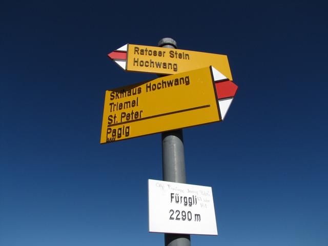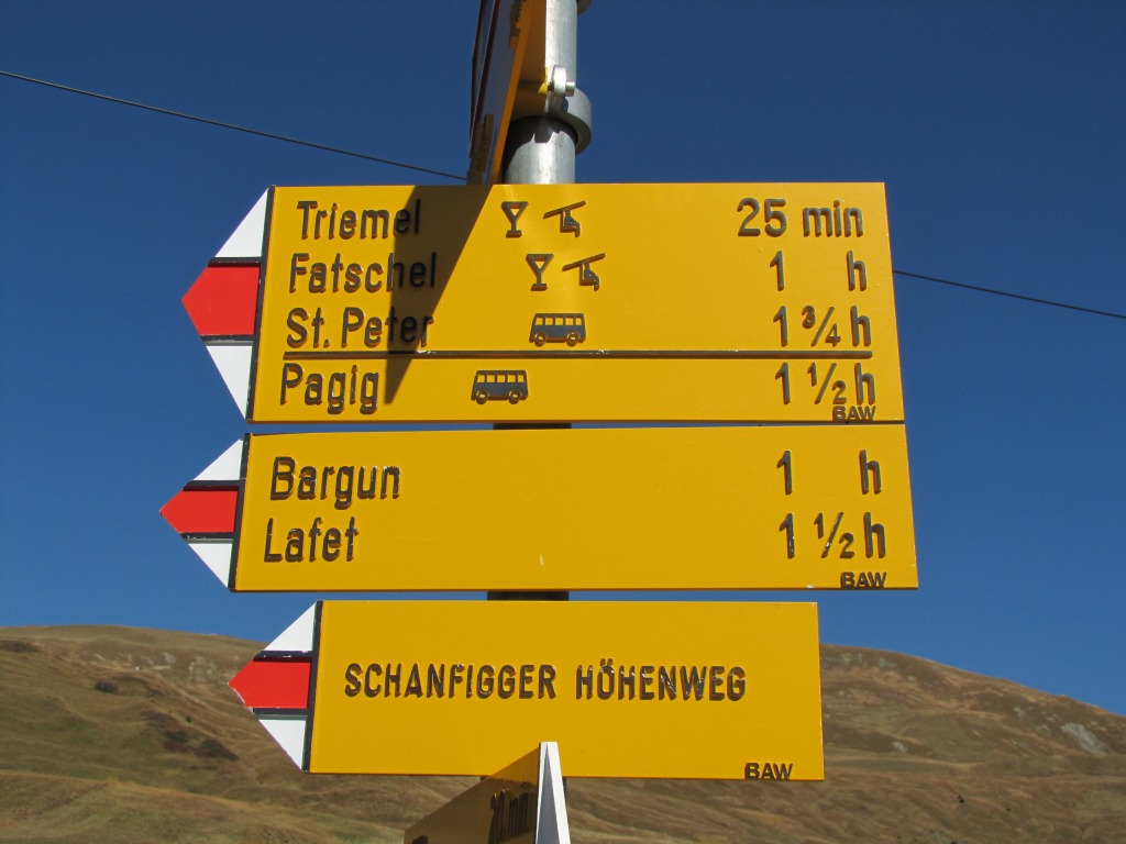 Wegweiser auf Pagiger Bleis 2135 m.ü.M.
