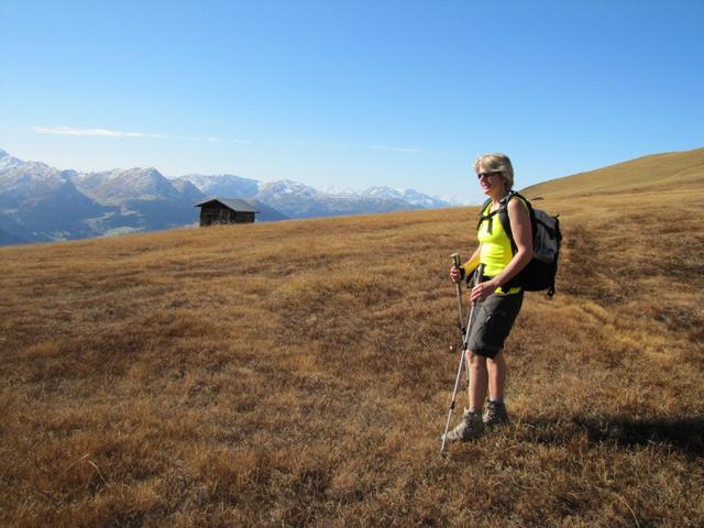 über die Alp "im Berg" verläuft der Wanderweg aufwärts. Am Horizont der Ratoser Stein