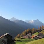 Tenna befindet sich im schönen Safiental. Am Horizont Piz Beverin und der Bruschghorn