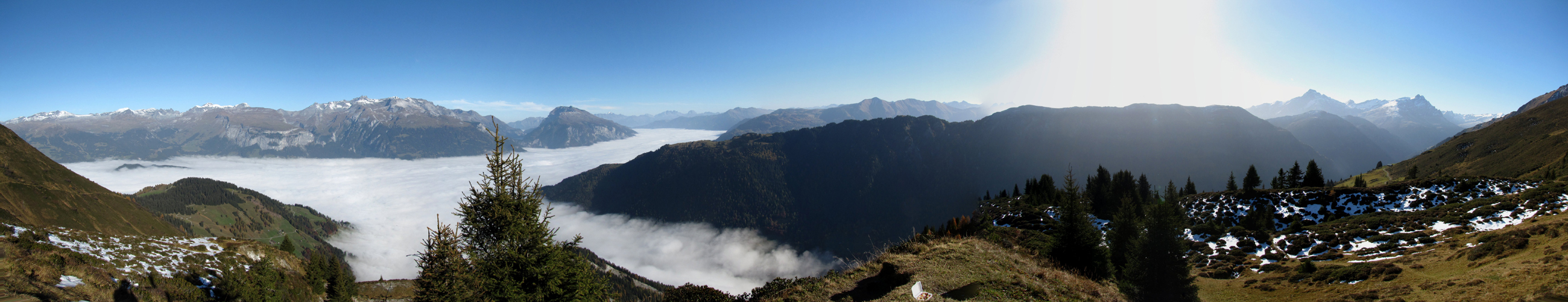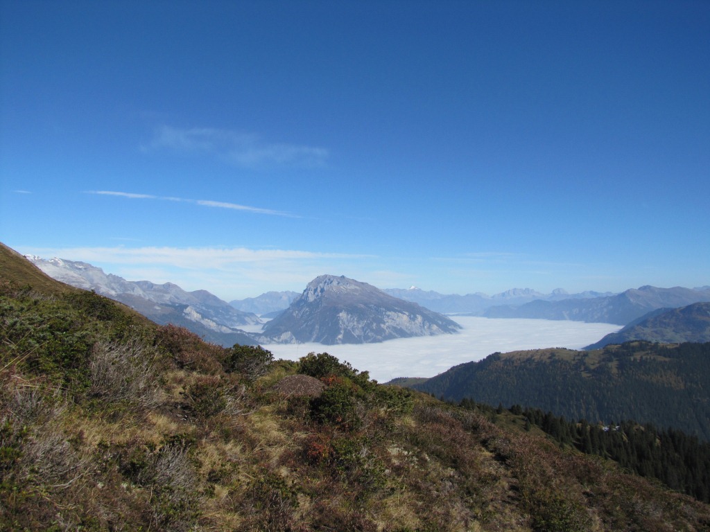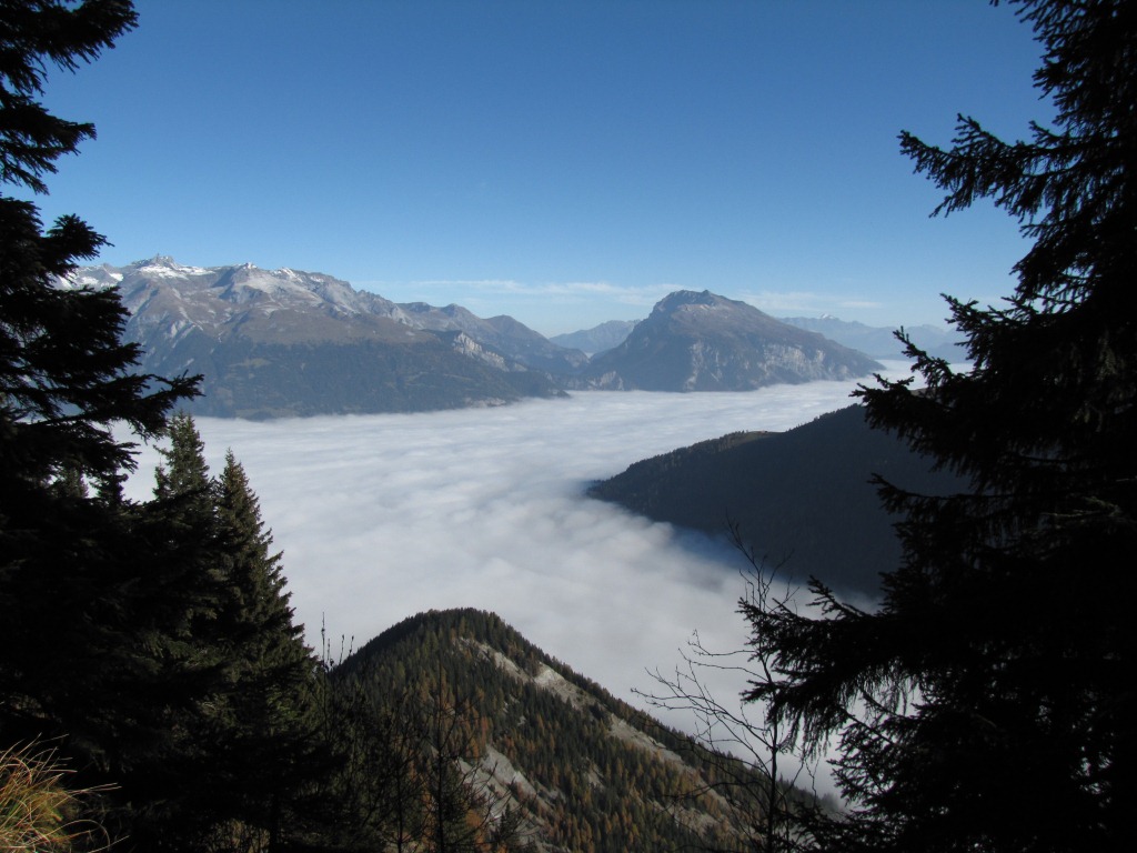 ein letzter Blick auf das Nebelmeer im Churer Rheintal und den Haldensteiner Calanda