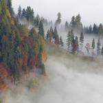 Blick ins Versam das unter der Nebeldecke liegt