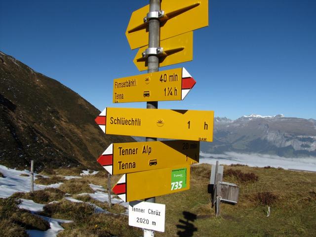 Wegweiser beim Tenner Chrüz