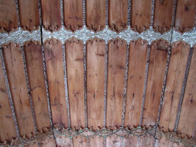 die schöne Holzdecke der kleinen Kirche