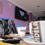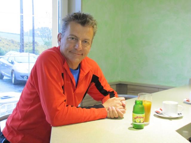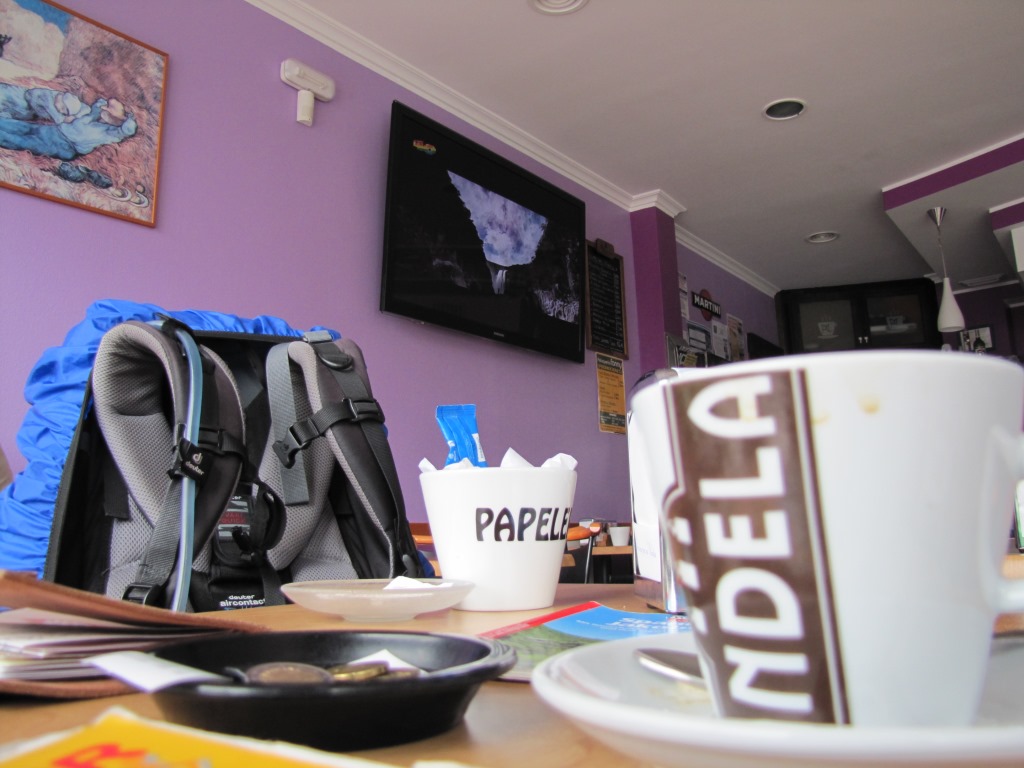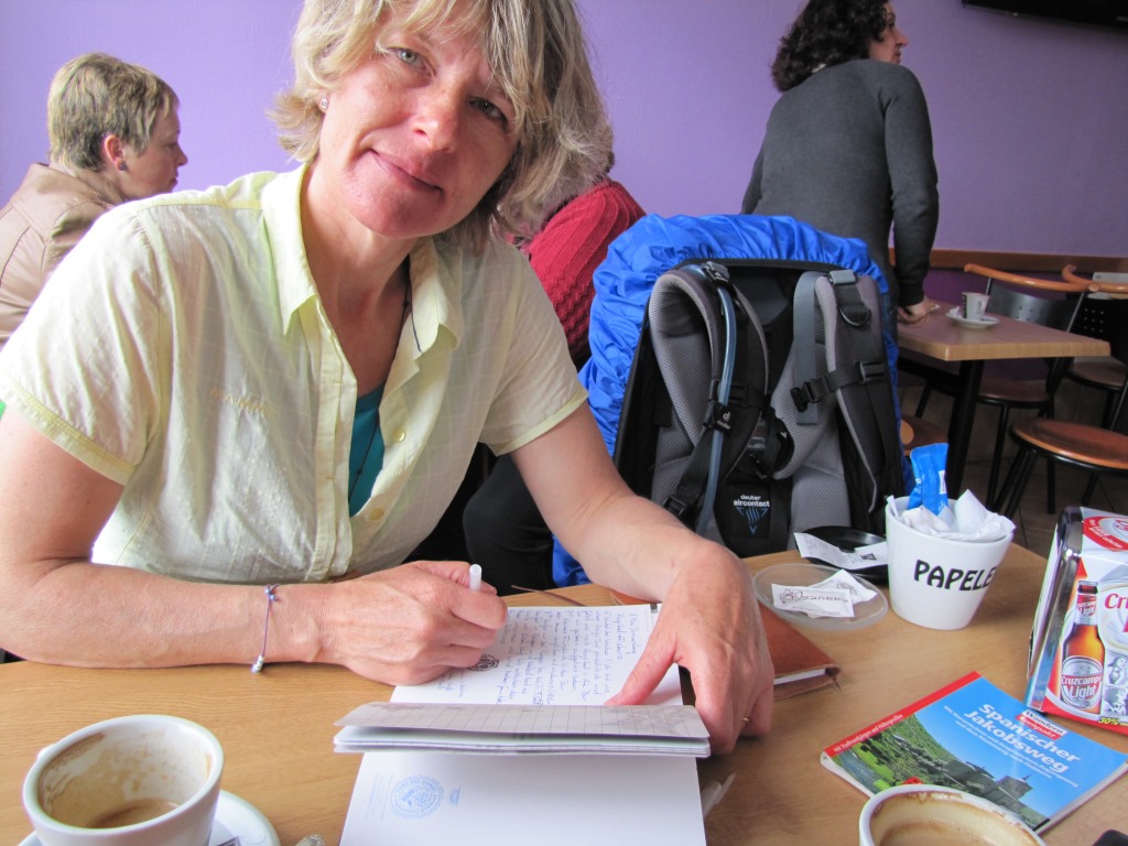in einer Cafeteria direkt beim Dorfplatz legen wir eine Kaffeepause ein. Mäusi schreibt das Tagebuch Datum 20.10.2013