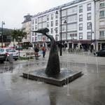 der grosse moderne Dorfplatz Praza de Constitucíon von Cee Datum 22.10.2013