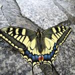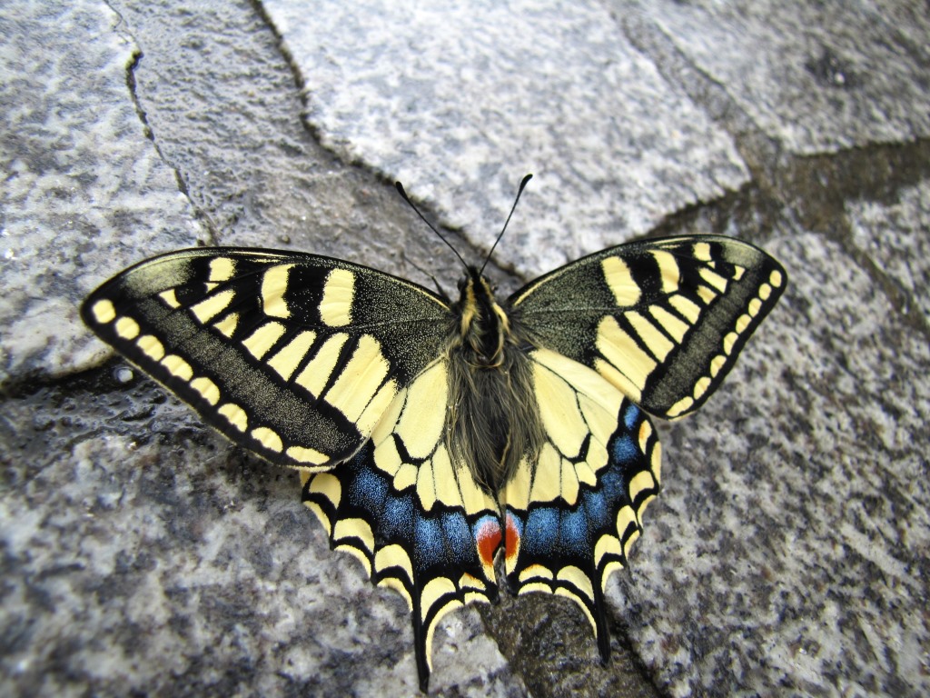 auf dem Weg nach Fisterra direkt vor unseren Füssen ein sehr schöner Schwalbenschwanz Datum 20.10.2013