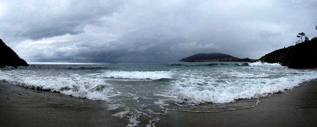 Breitbildfoto der Playa de Langosteira mit Finisterre Datum 25.11.2016