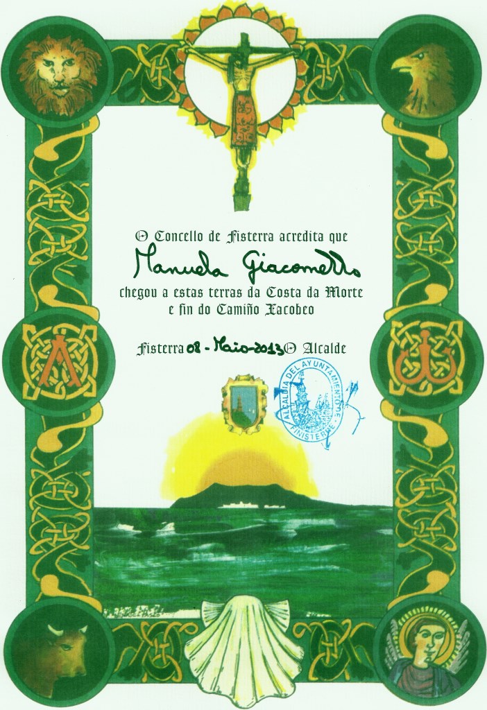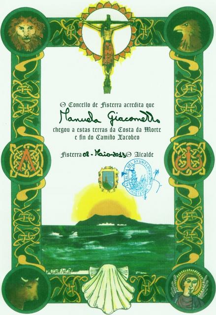 Manuela's Pilgerurkunde "Fisterriana" Datum 25.11.2016